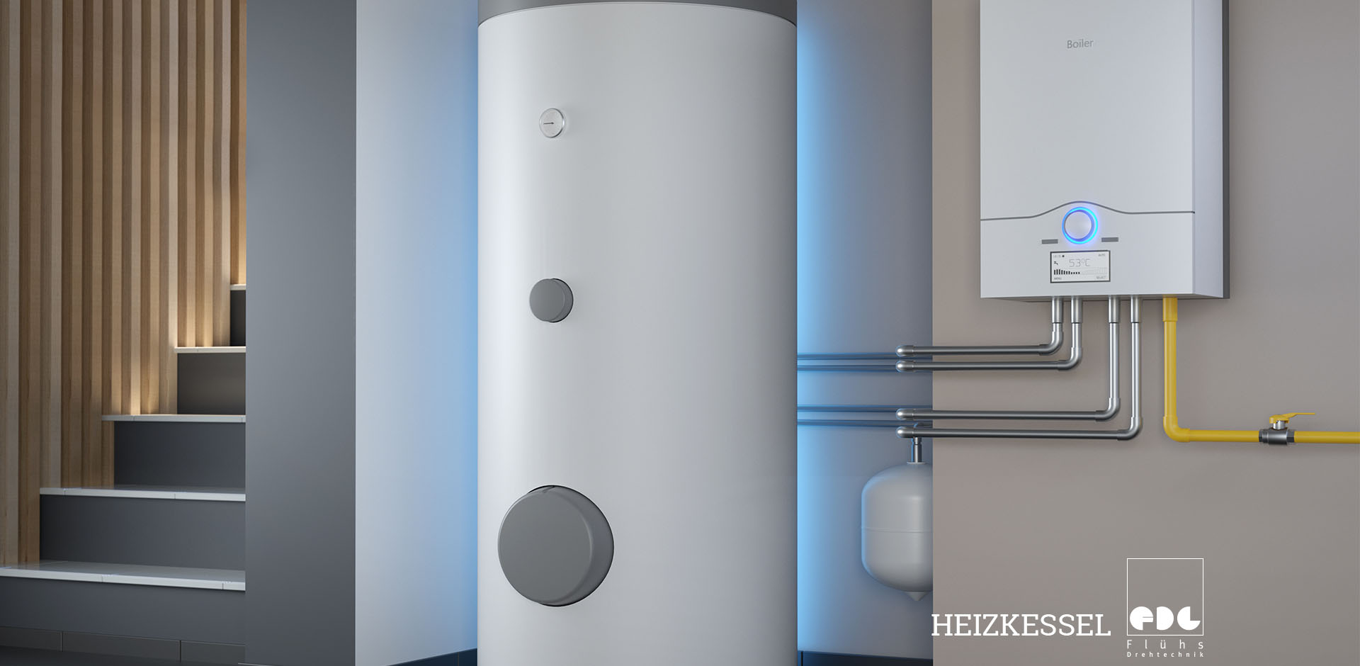 Der Heizkessel erzeugt Wärme, indem er chemisch gebundene Energie in thermische Energie umwandelt und so das Heizwasser erwärmt. Flühs Drehtechnik stellt Heizungsventile her, die den Durchfluss der Heizungsleitungen zuverlässig regulieren.